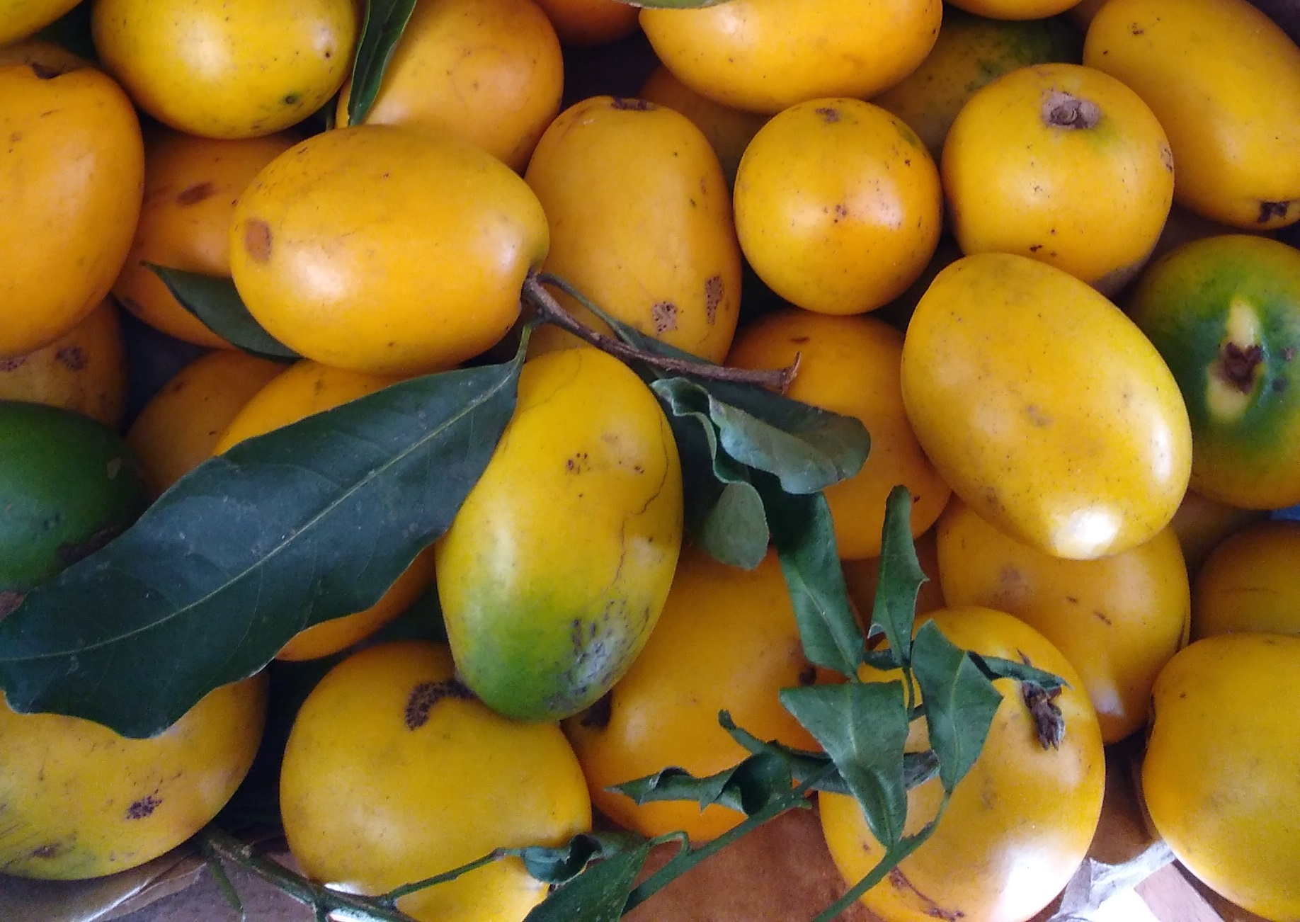 Wild turmeric, or açafrão (Curcuma aromatica) is grown locally and sold fresh or as a dried ground powder.