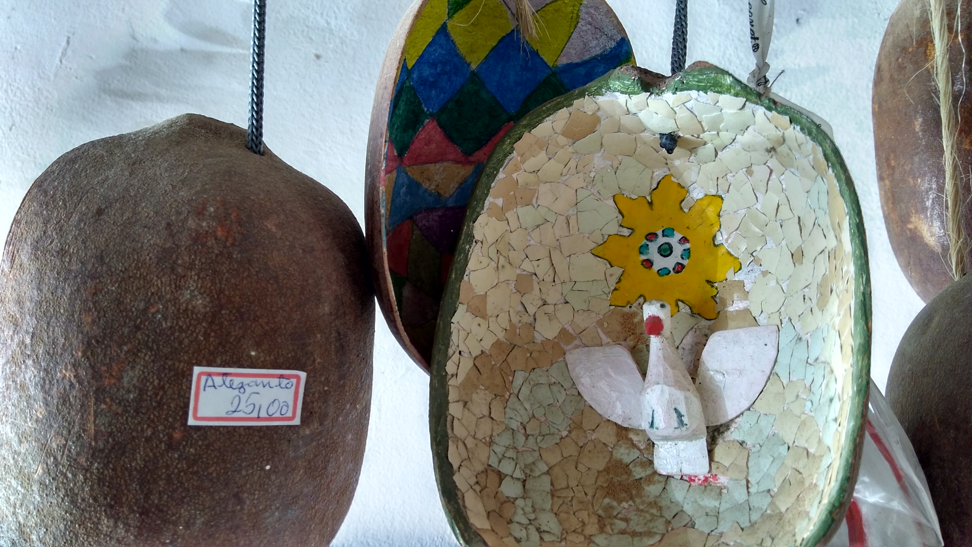 The fair is also a place for art and craft. Here we can see the woody cask of the cupuaçu being decorated and sold as art.