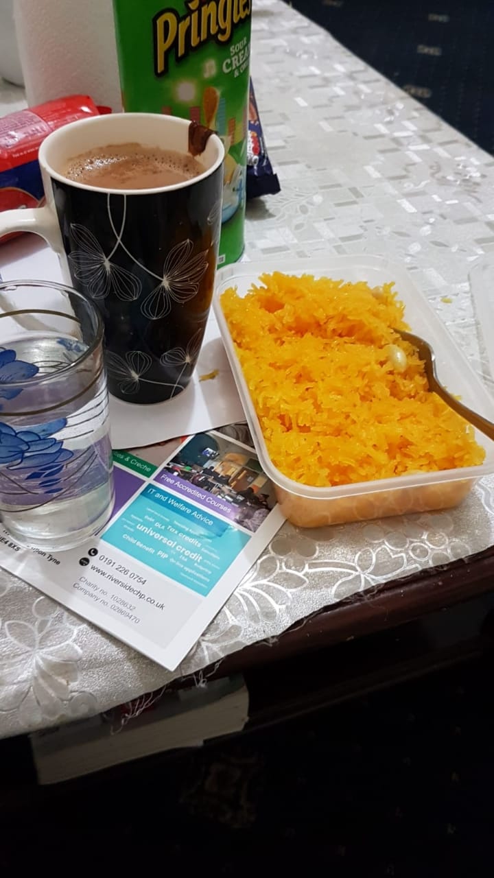 and at the end of day when i met with my steemain friends again i enjoy cup of coffe with my dinner so i feel fresh when i share my whole day experience with my friends . but today i drink much cold juice before my dinner . today i made sweet rice . it was so delicious . i eat about 2 plates and then drink coffee.