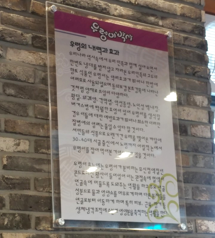 맞은편 벽에는 우렁이의 효능도 적혀 있구요~