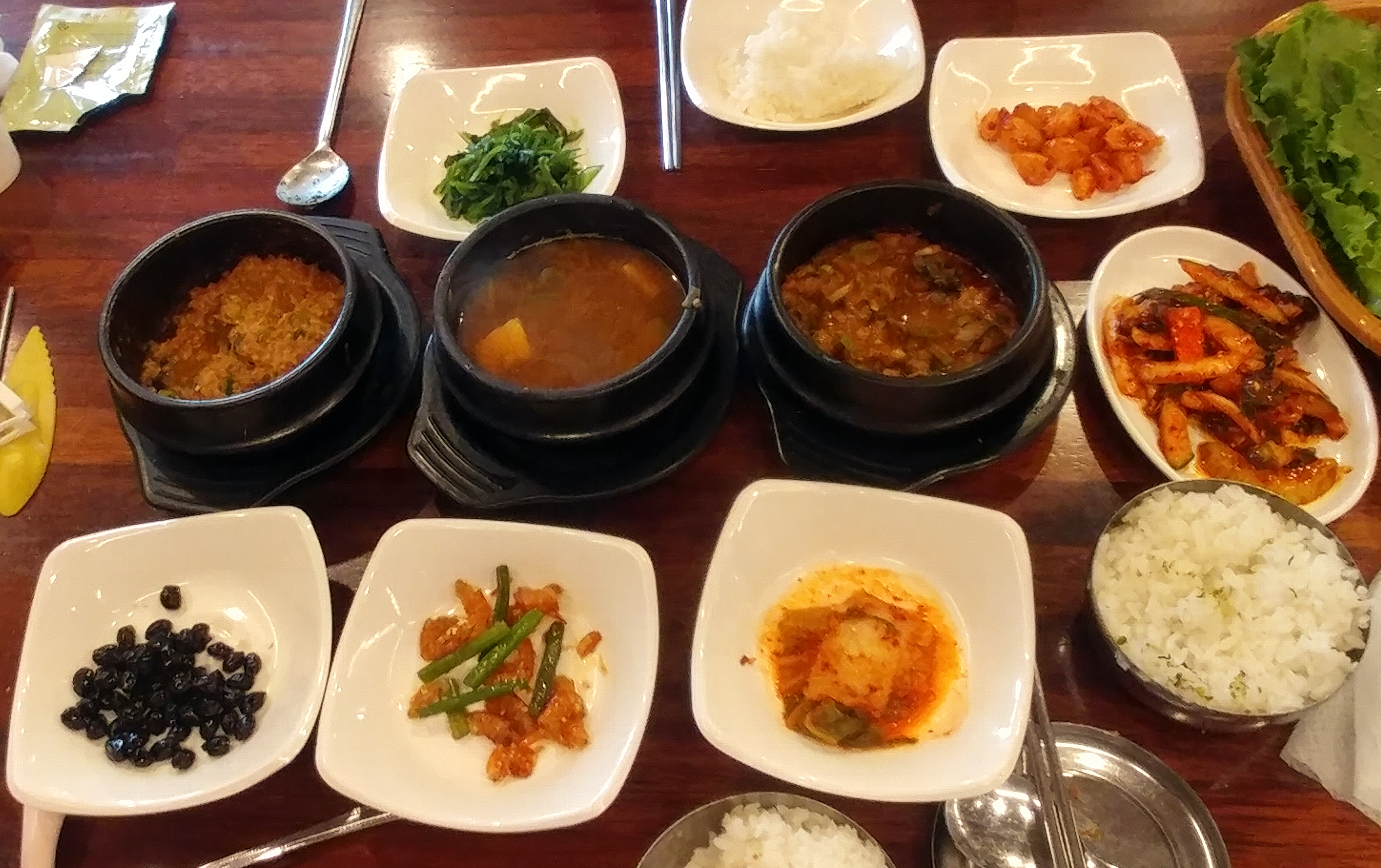 쌈채소도 나오지만 저는 쌈을 좋아하지 않아서 덕장에 밥을 쓱쓱 비며 혼자서 공기밥 두 그릇을 후딱 비웁니다.
