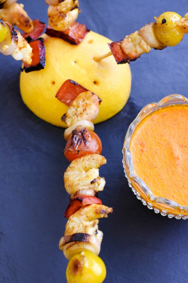 Marinated shrimp skewers with garlic