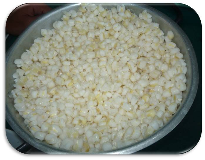 1)The desired amount of white corn to be processed is obtained, which is achieved through a machine known as a threshing machine. This process consists of removing the shell of the corn to achieve its polishing, once the corn is threshed it is processed to the next step. It is worth noting that I did not take a picture of the thresher because the owners did not allow me to do so.