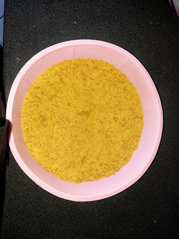 Once you have mixed it put the dough into the cake mold and press it against the bottom and edge of the mold. It's a bit crummy.