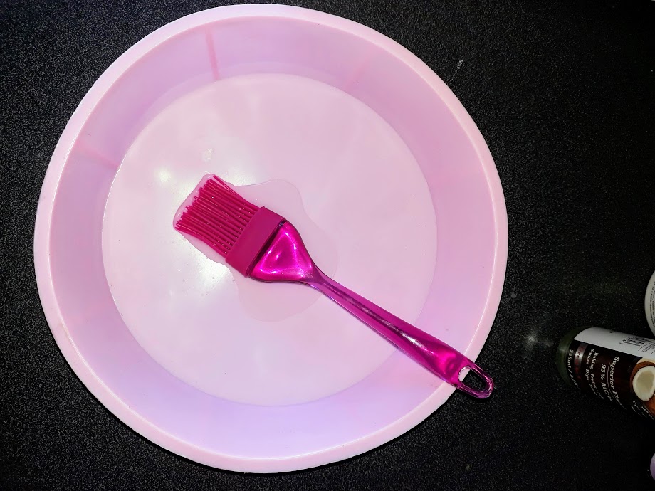 Preheat the oven at 180 degrees celsius. Crease the cake mold with a little bit of coconut oil.