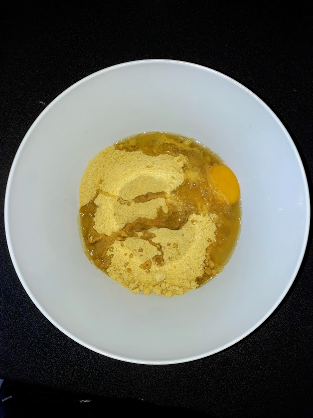 Add the almond flour, 2 tbs coconut oil and 1 egg into a bowl and mix it all together.