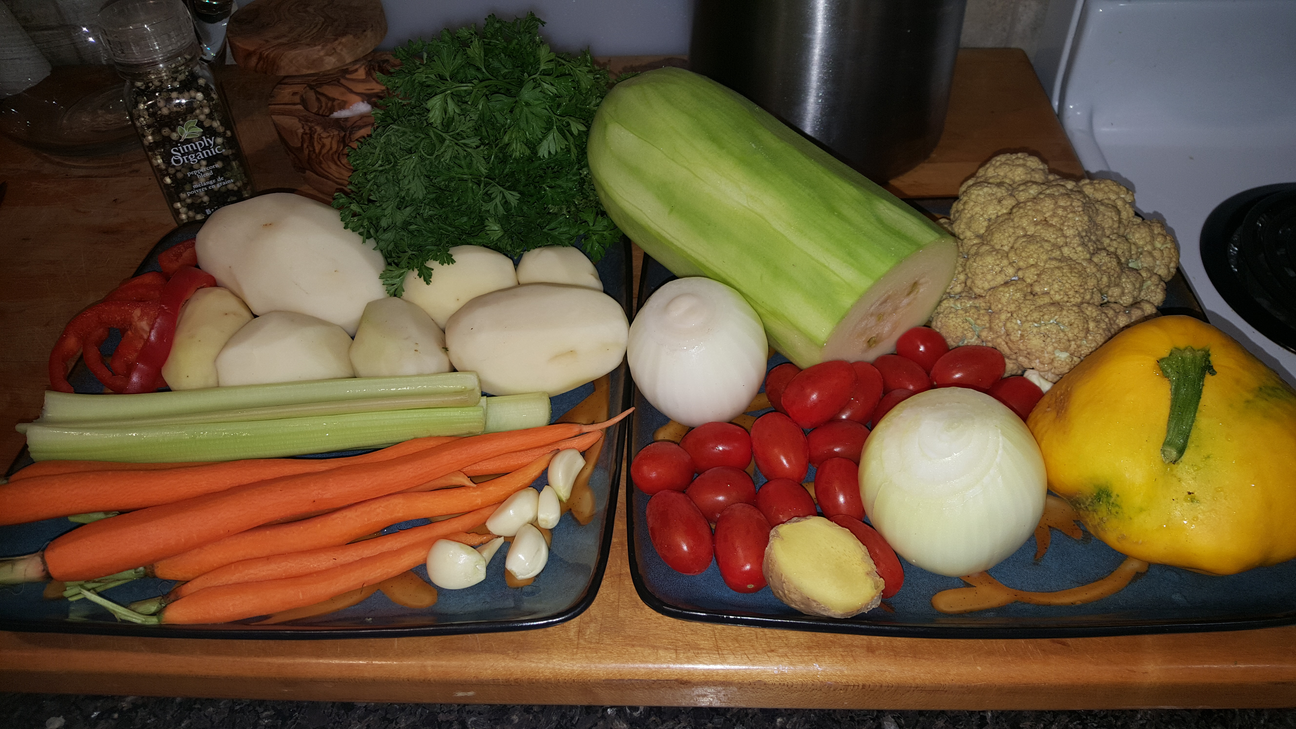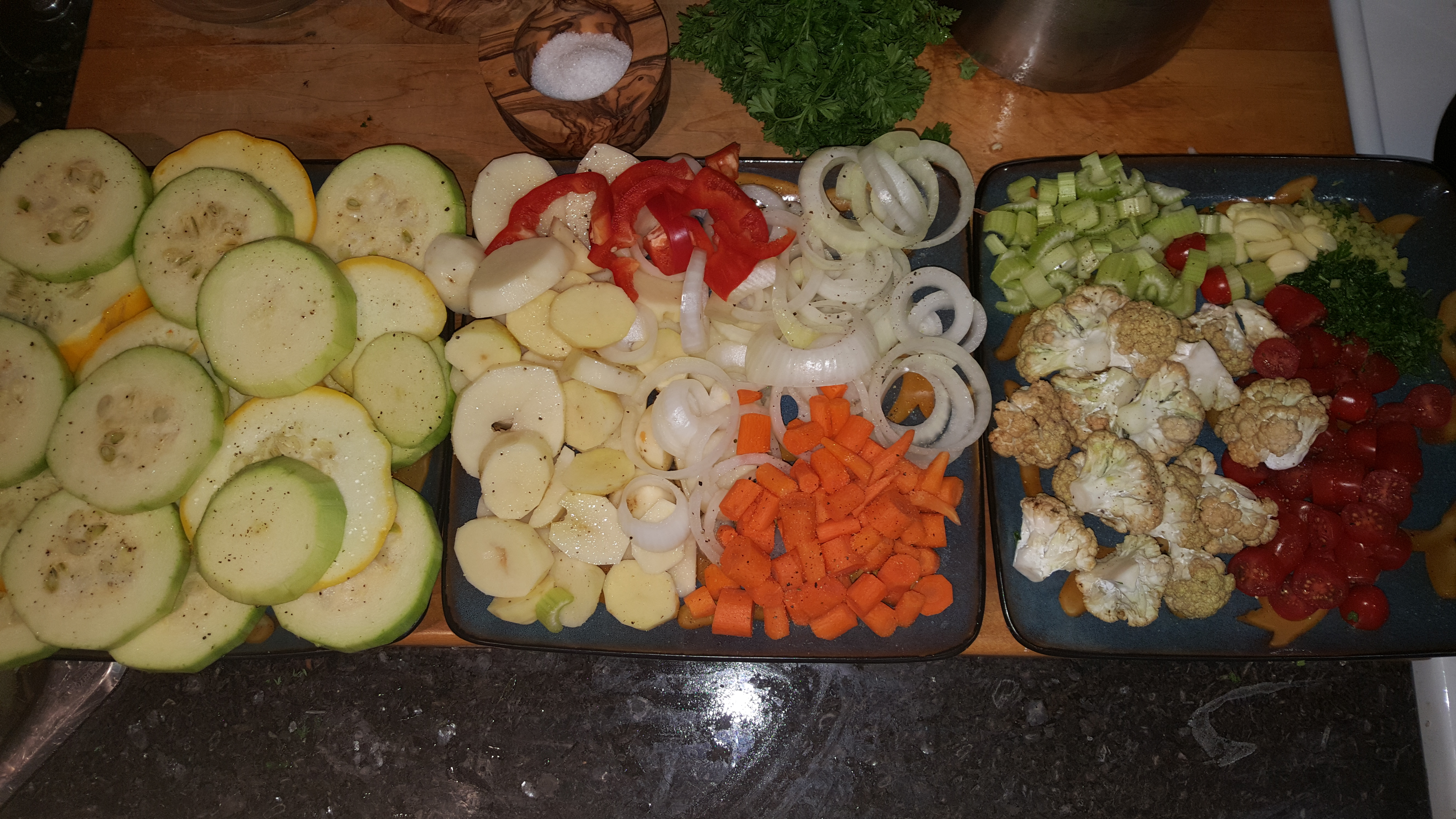 First I wash and cut up the veggies in similar sizes so it bakes evenly.