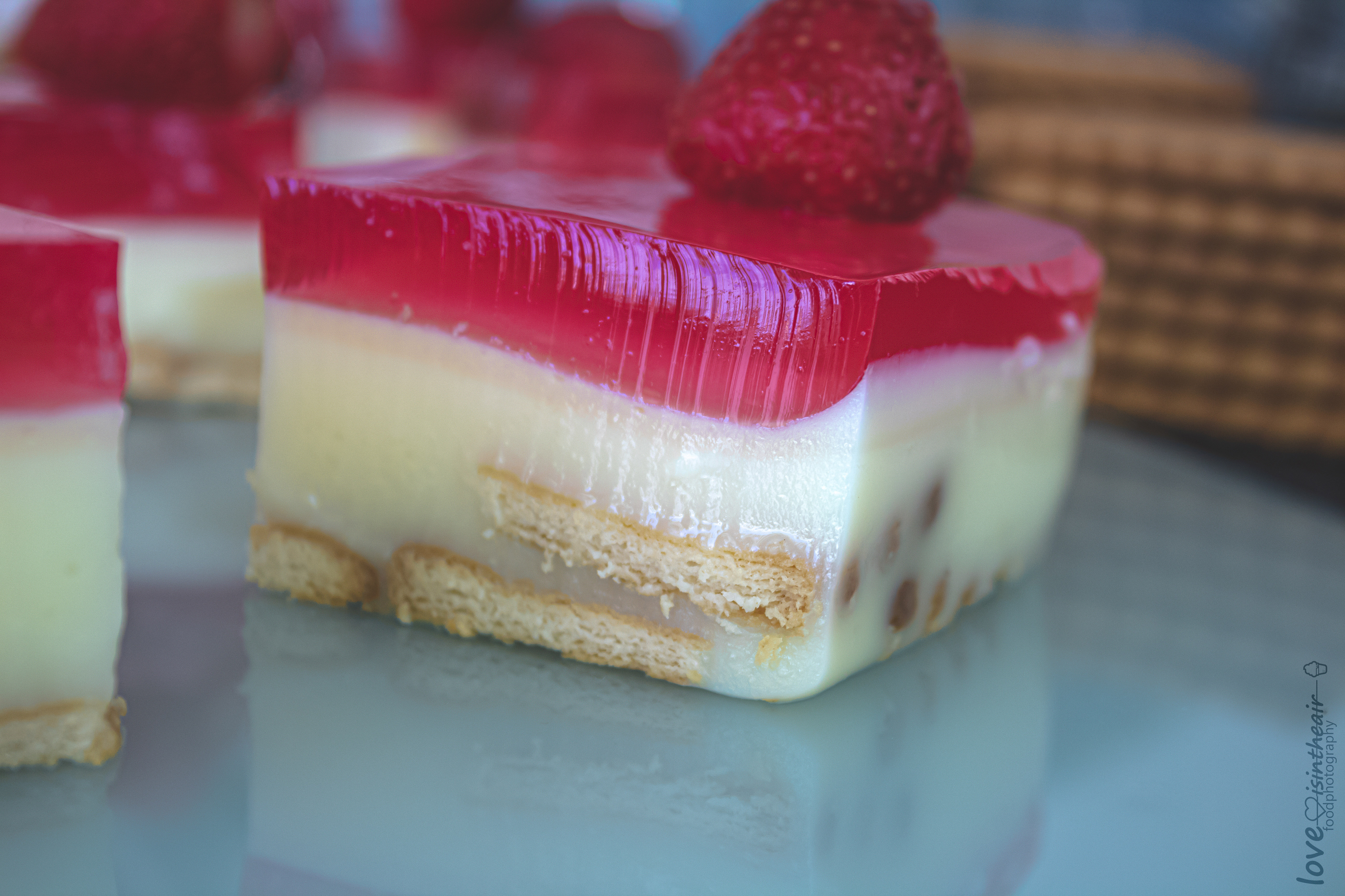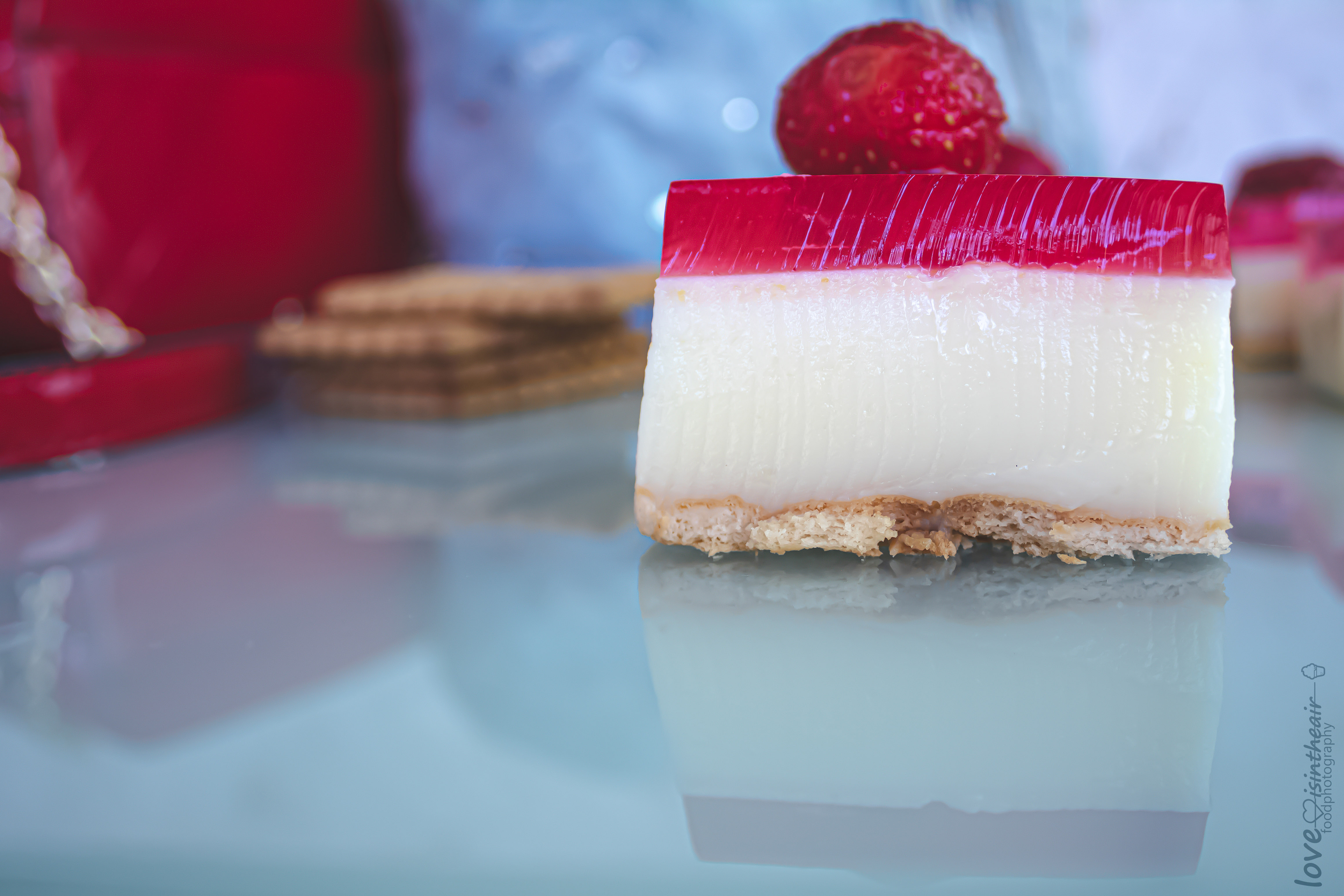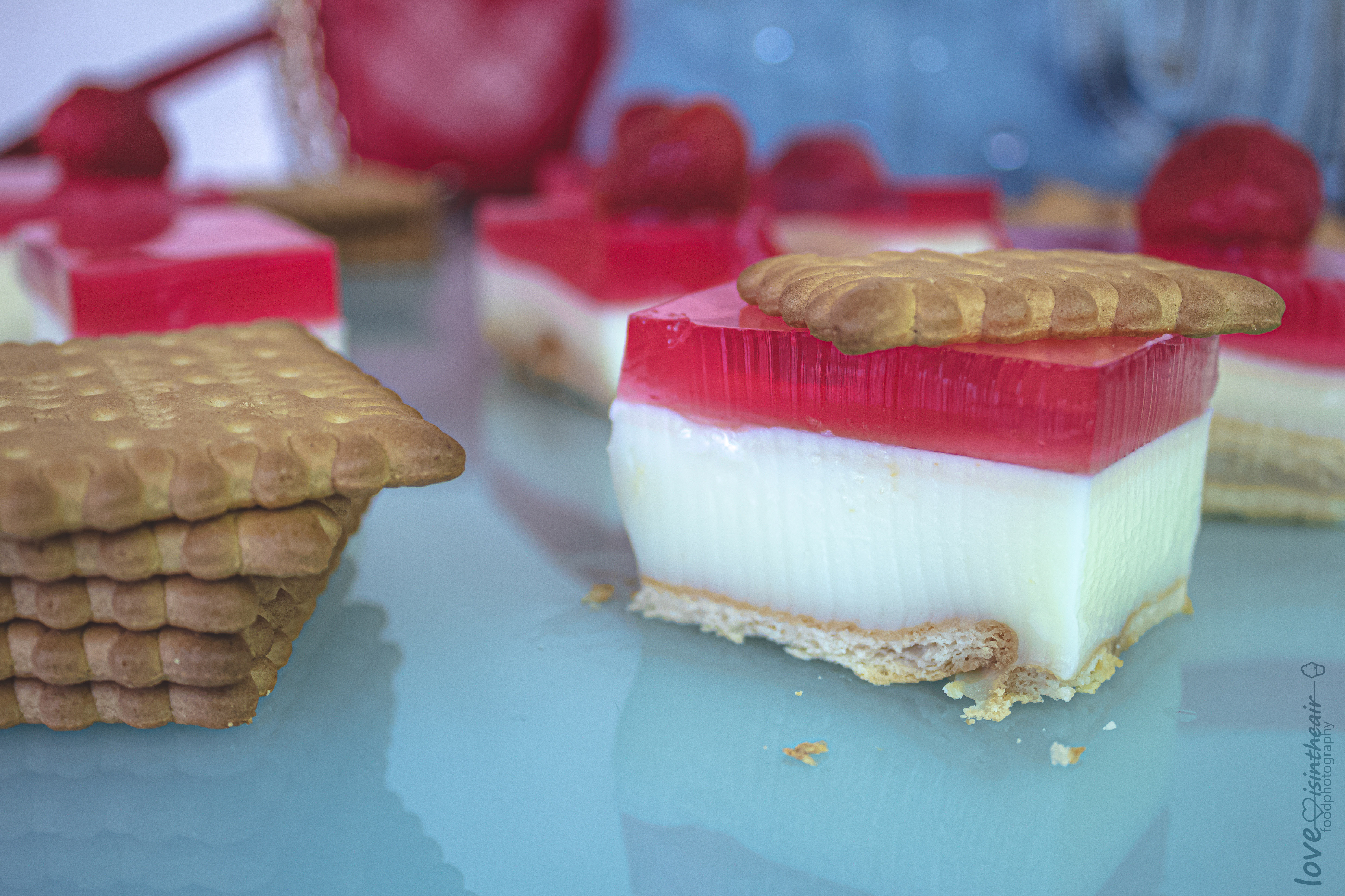 It's a quick and extremely easy -to make- sweet, made with strawberry jello, milk, butter, pudding with vanilla flavor and petit beurre biscuits.This chilled strawberry jello treat has a velvet texture and is soo light and irresistible, that one slice is not enough.. Once you've tasted you will love it!
