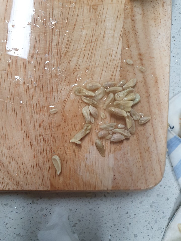 씨를 제거하면서 잘랐어요.