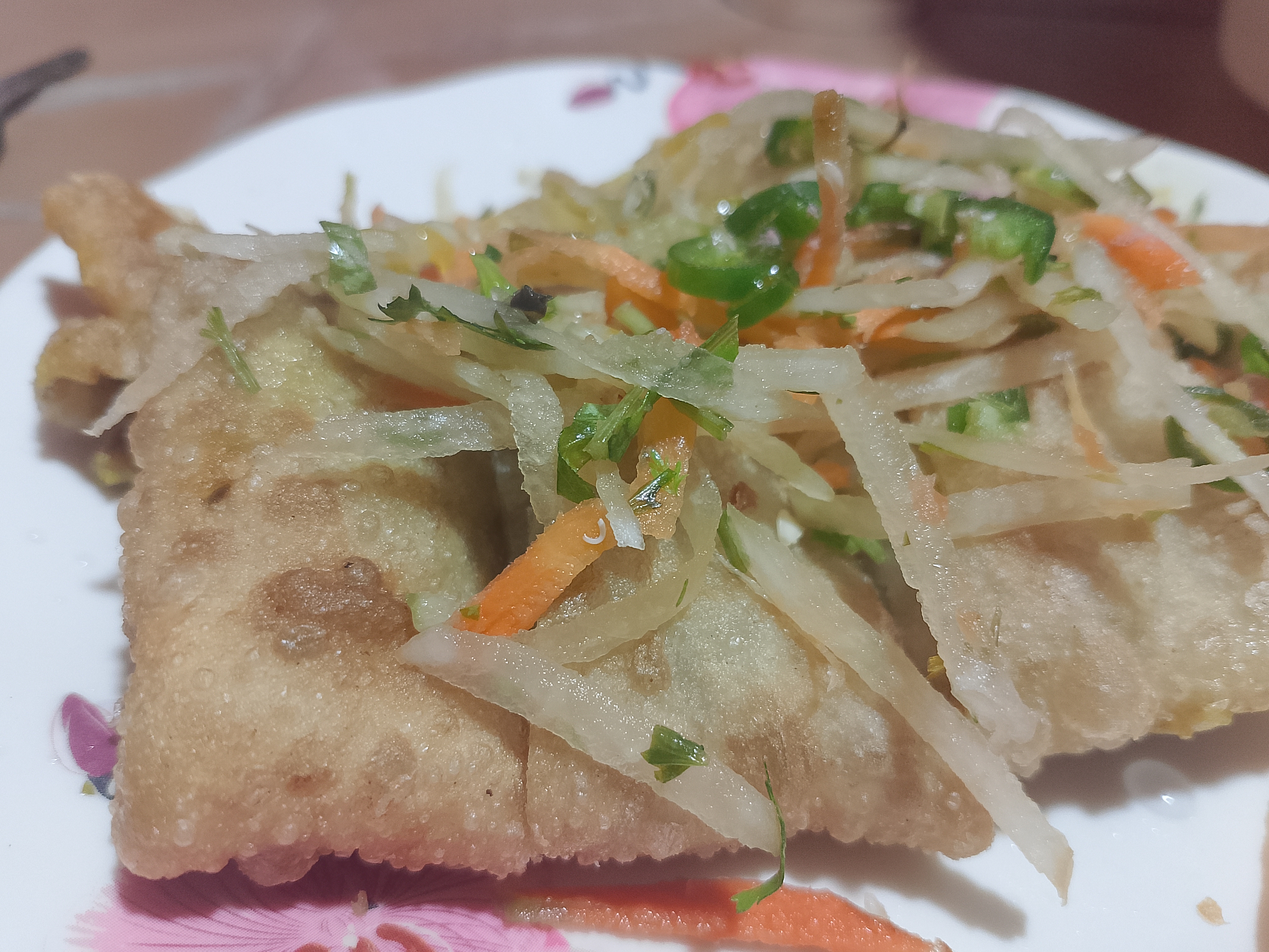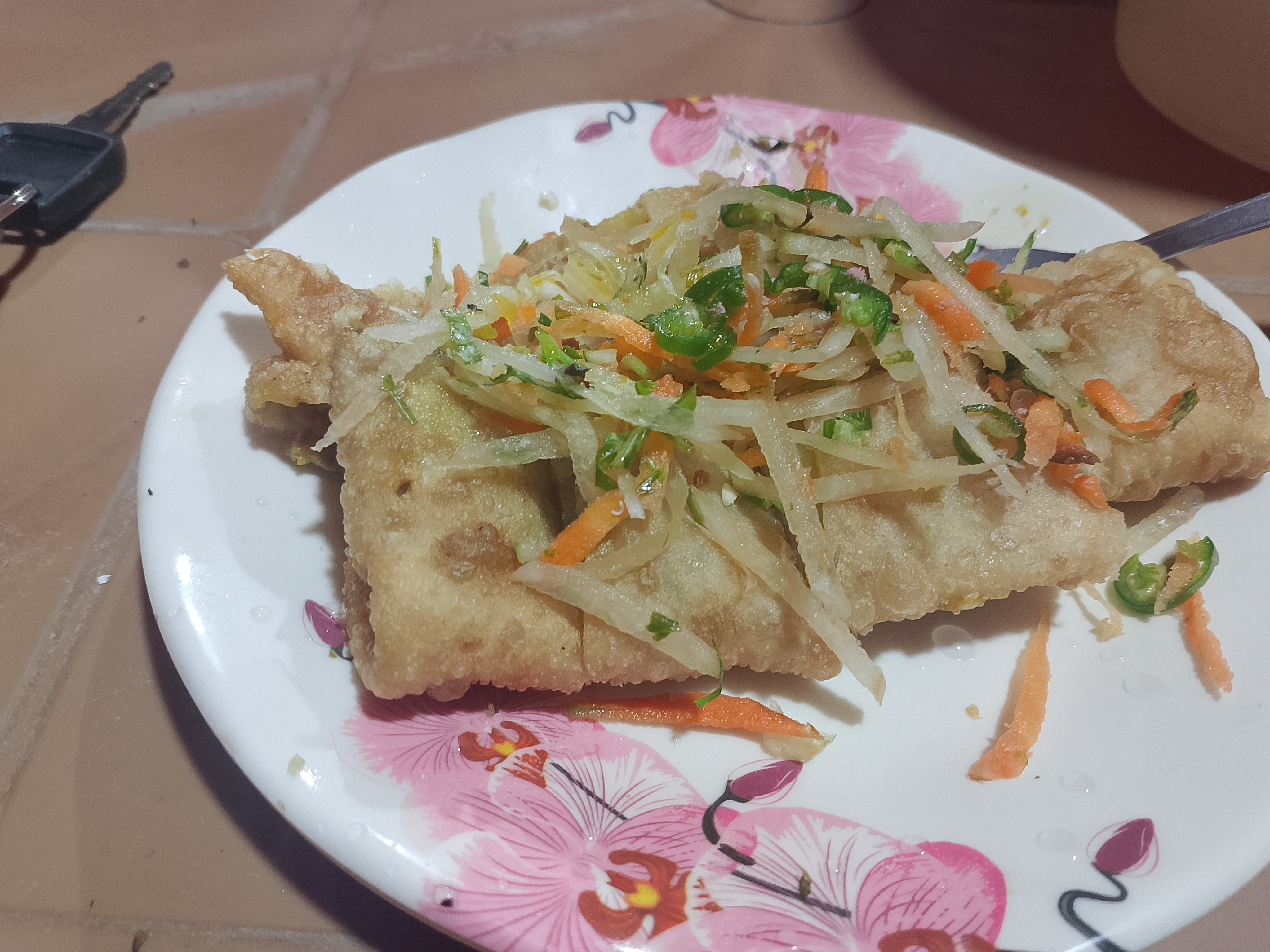 The Moglai was cut nicely and prepared well. I liked the taste very much. It was served to me nicely, and I enjoyed eating it. The dough was made well, the meat was finely chopped and added inside, then fried. It tasted very good, and I really liked the Moglai.