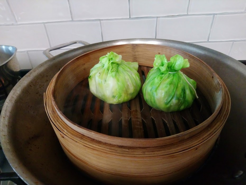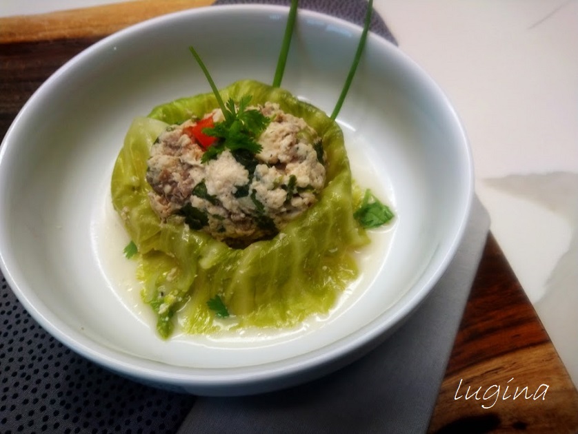 Then mix it with the ground beef, wrap it with the cabbage peel and steam them.