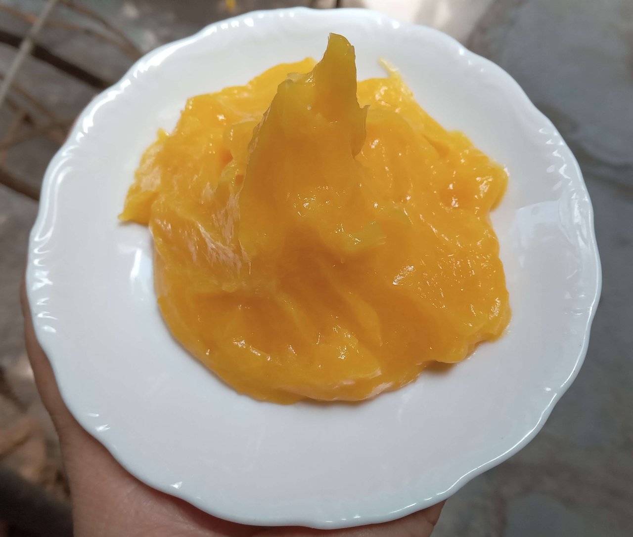 Greetings and happy Saturday, dear vegan family! As I recently mentioned, mango season has begun in my country, Venezuela, and as I said, I've received several kilos of mangoes as gifts, both ripe and green. So I set aside the green ones and stored them in the refrigerator to make a traditional dessert with a smooth and delicate texture and an exquisite flavor. I'm talking about MANGO JELLY, a sweet treat sold in many parts of Venezuela, and in my town, it's very common to see houses and shops offering this delicacy.