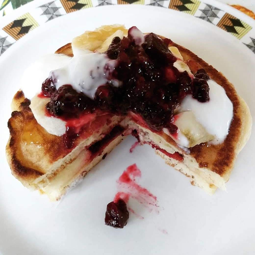 I wanted something special for breakfast this morning, so I made these American-style pancakes with some of my sourdough starter. They came out perfectly fluffy, and I ate them with blackberry jam, banana, yoghurt and honey. I already want more! Maybe tomorrow...