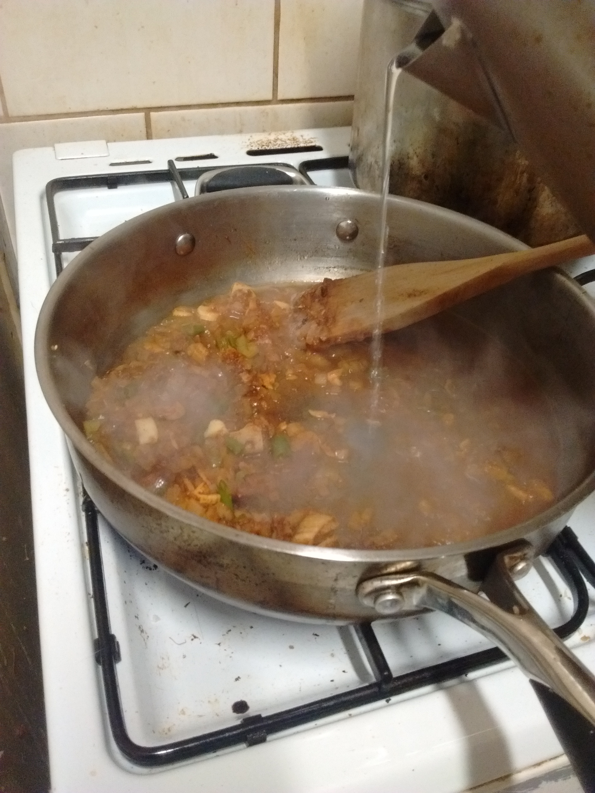 This is a typical way to make a gravy which is both simple and delicious. Not to mention cheap - you can easily make a dish like this for around £1-2 per head (thats probably about a steem buck each now!). Of course this depends on if you choose to use meat or make it vegetarian/vegan like this recipe.