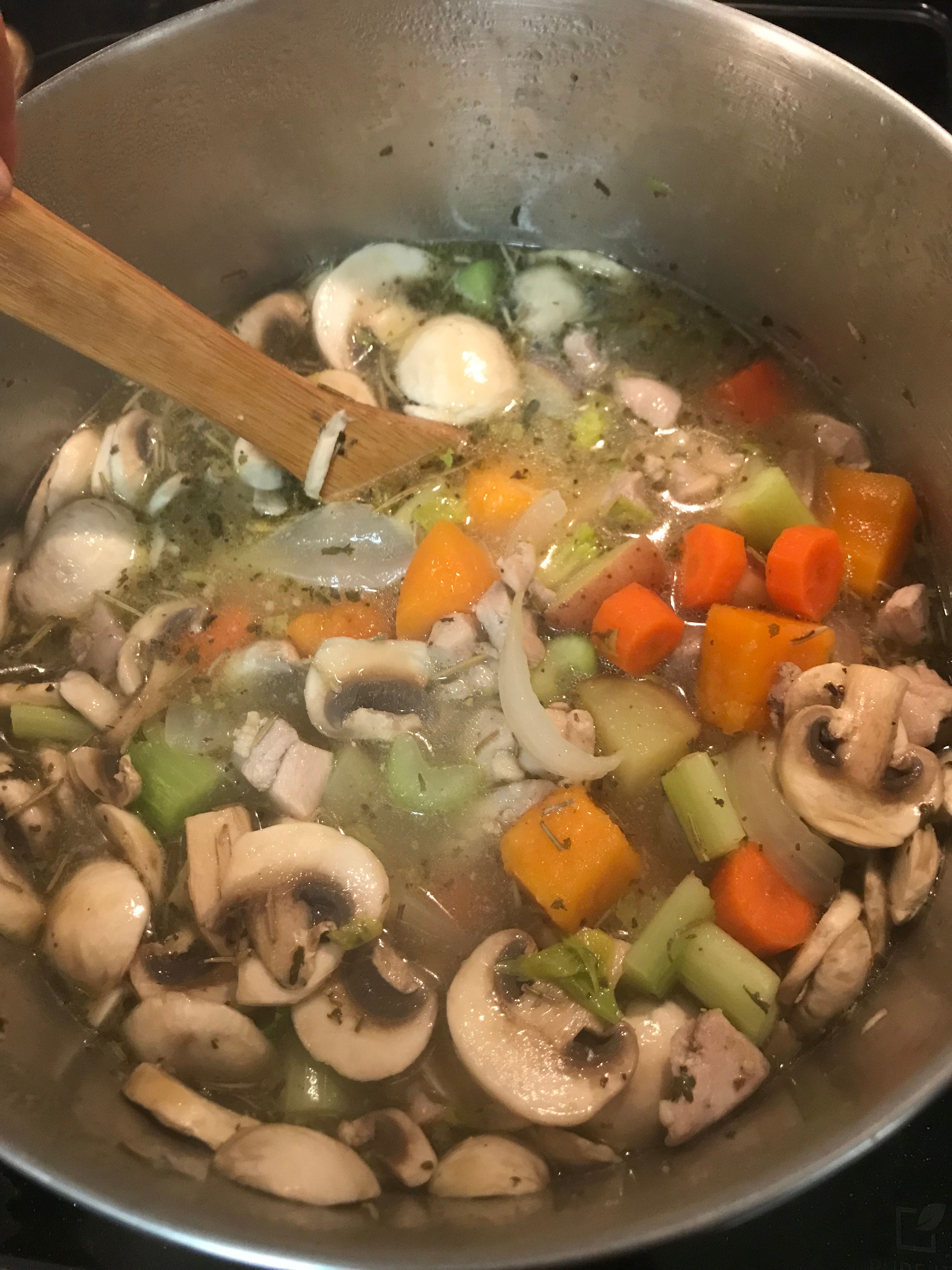 add your veggies/chicken broth