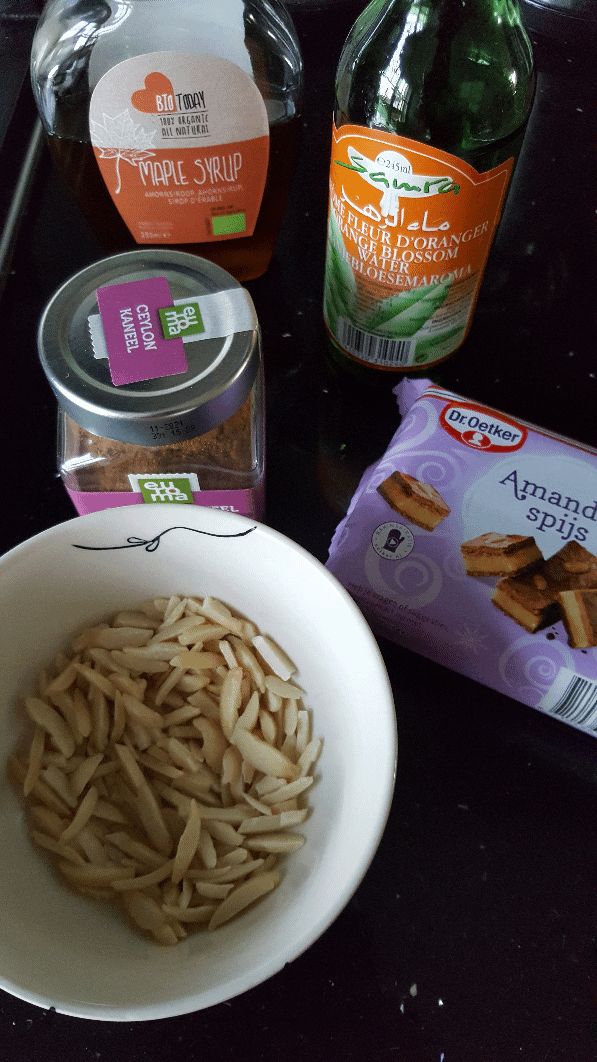 It's just puff pastry with marzipan and some almonds with cinnamon, orange blossom water and maple syrup.