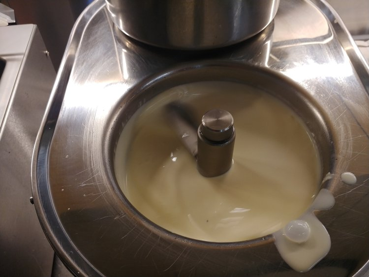 Add the cream, egg yolks and sugar into the thermomix along with the whole vanilla bean. You can split the vanilla but add everything.