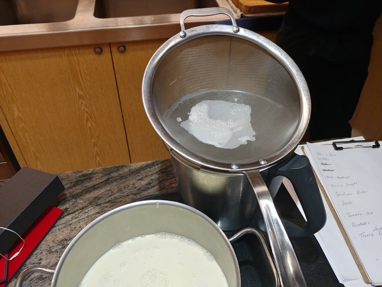 Pass the liquid through a sieve.
