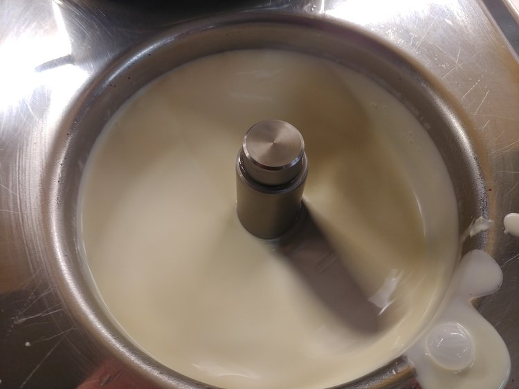 Chill the liquid for an hour, then add it to a ice cream machine.