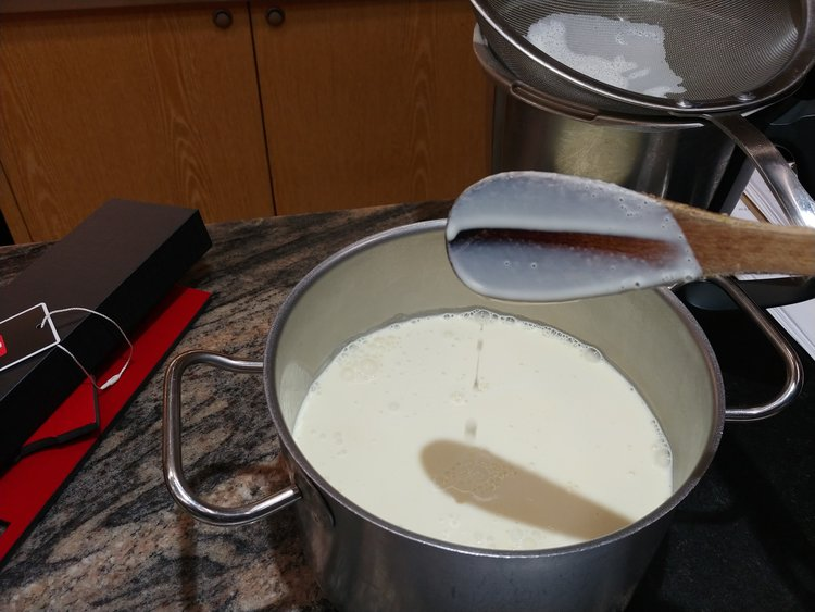 You should be able to run your finger across a dipped wooden spoon and your mark should stay. If it does not, please add back to the thermomix for another 2 minutes.
