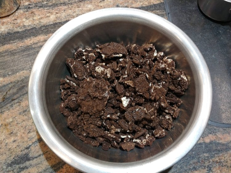 Clean out your thermomix. Add the Oreo’s and blitz speed 10 for 5 seconds.