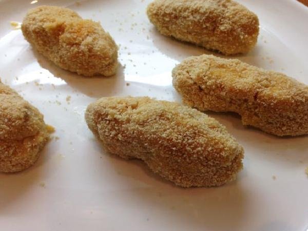 • Once everything is mixed, begin to make the balls and crushing them by giving them a half-elongated shape, and then go through the bread crumbs.