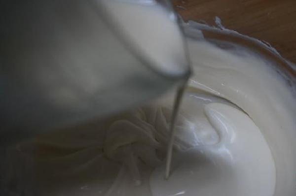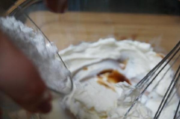 • To prepare the ice cream in a large container, add the cream cheese and beat until it is creamy, then add the sugar and vanilla, and beat gradually.