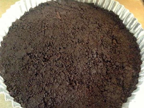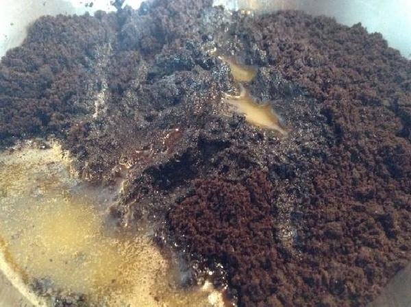 • In a large container add the already crushed cookies with the melted butter and beat well to integrate the two ingredients.