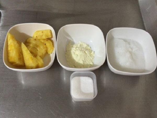 • To begin with, chop the pineapple in small pieces, and add it in the blender with half a glass of water, and blend until it is like a kind of juice.