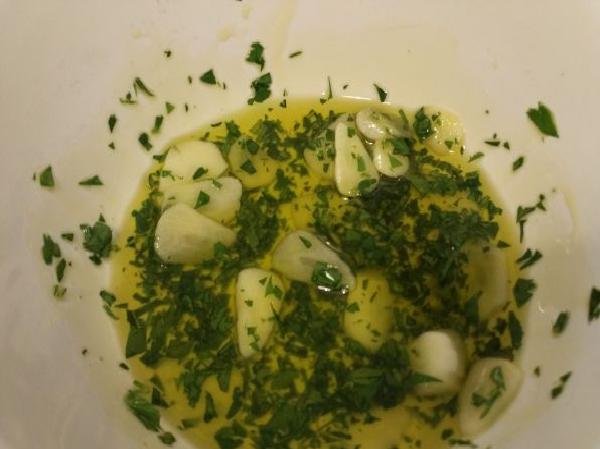• Prepare a green sauce with olive oil and garlic and parsley already chopped.