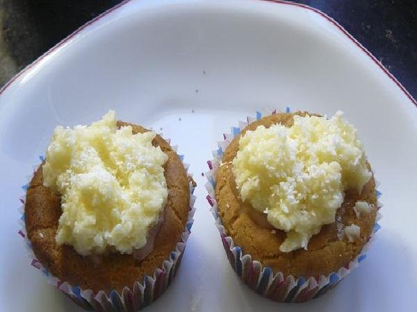 • For the decoration, a little frosting is placed on each of them, ending with a touch of grated coconut. To improve the decoration you can help with the use of a pastry bag, and give it the shape you like the most.