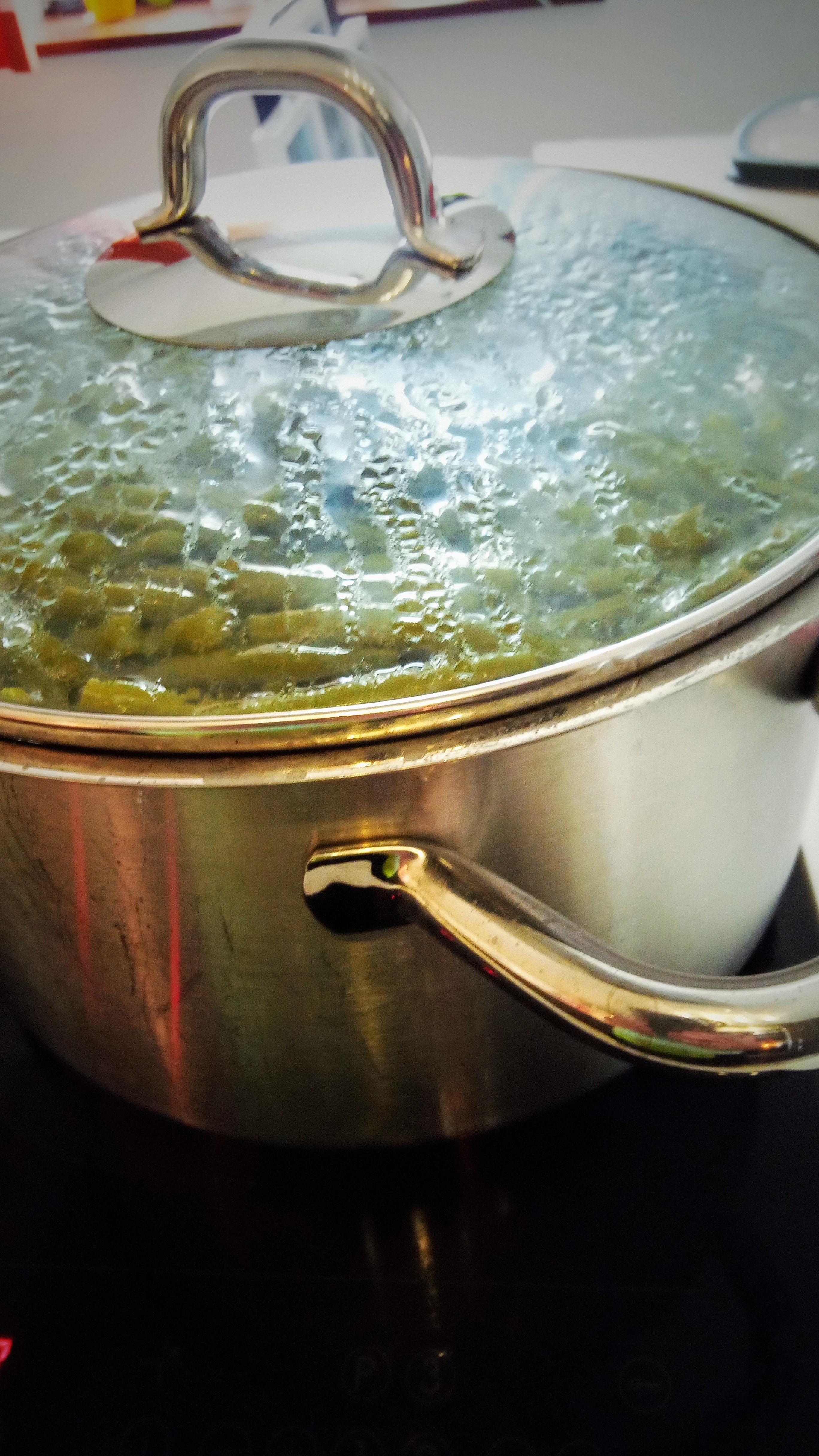 Because the quantity of it was too big to eat in one meal, I decided to put it in glass jars, and store them for the winter. Some beans I left fresh, and we will prepare them in days to come, with some other ingredients: olive oil, vinegar, and garlic. I love such kind of a salad, but not just me - my kids, and partner like it too. But the rest I cooked and stuffed the jars.