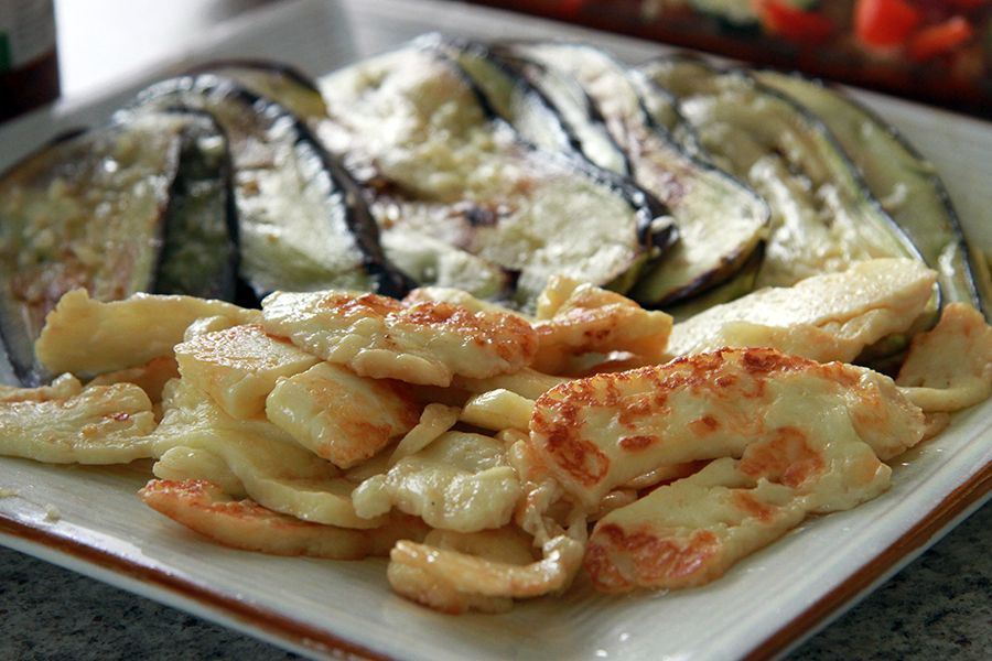 Slice the cheese and grill for a few minutes on both sides (preferably, on a grill pan). ย