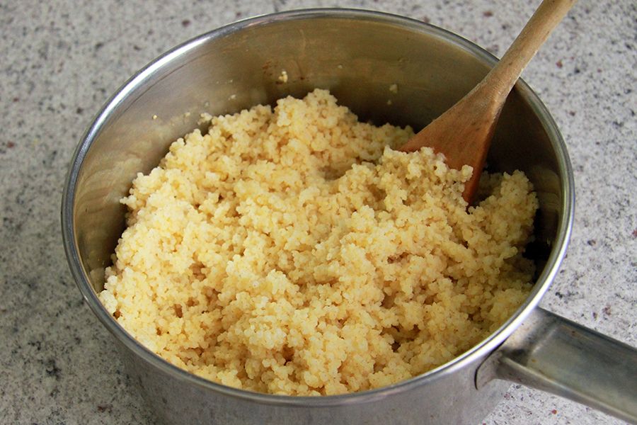 Put the millet in a dry pan and roast for a few minutes. Then rinse with water. Pour ca. 2 glasses of water, add a pinch of salt and cook under a lid until the millet absorbs the water. Donโt stir it when itโs cooking. By the end of cooking, reduce the heat to minimum. ย ย
