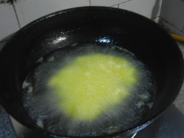 10,Fry the lotus root for 1 minutes and get out of it(把藕丁炸制1分钟,捞出备用)