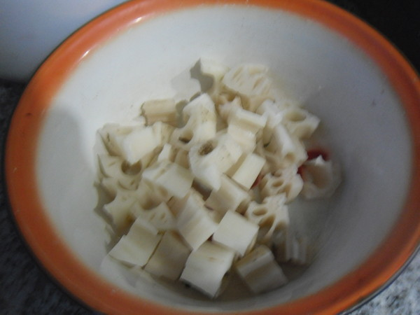 6,Wash the lotus root and cut the skin(把藕洗净去皮切块)