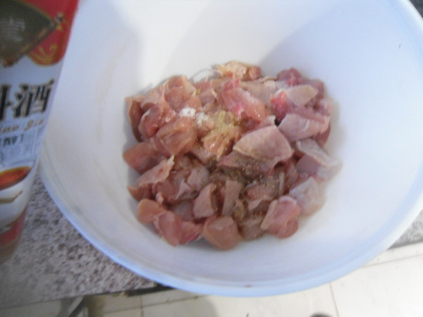 4,Add salt, pepper, and wine for 5 minutes(加盐、胡椒粉、料酒拌匀腌渍5分钟)