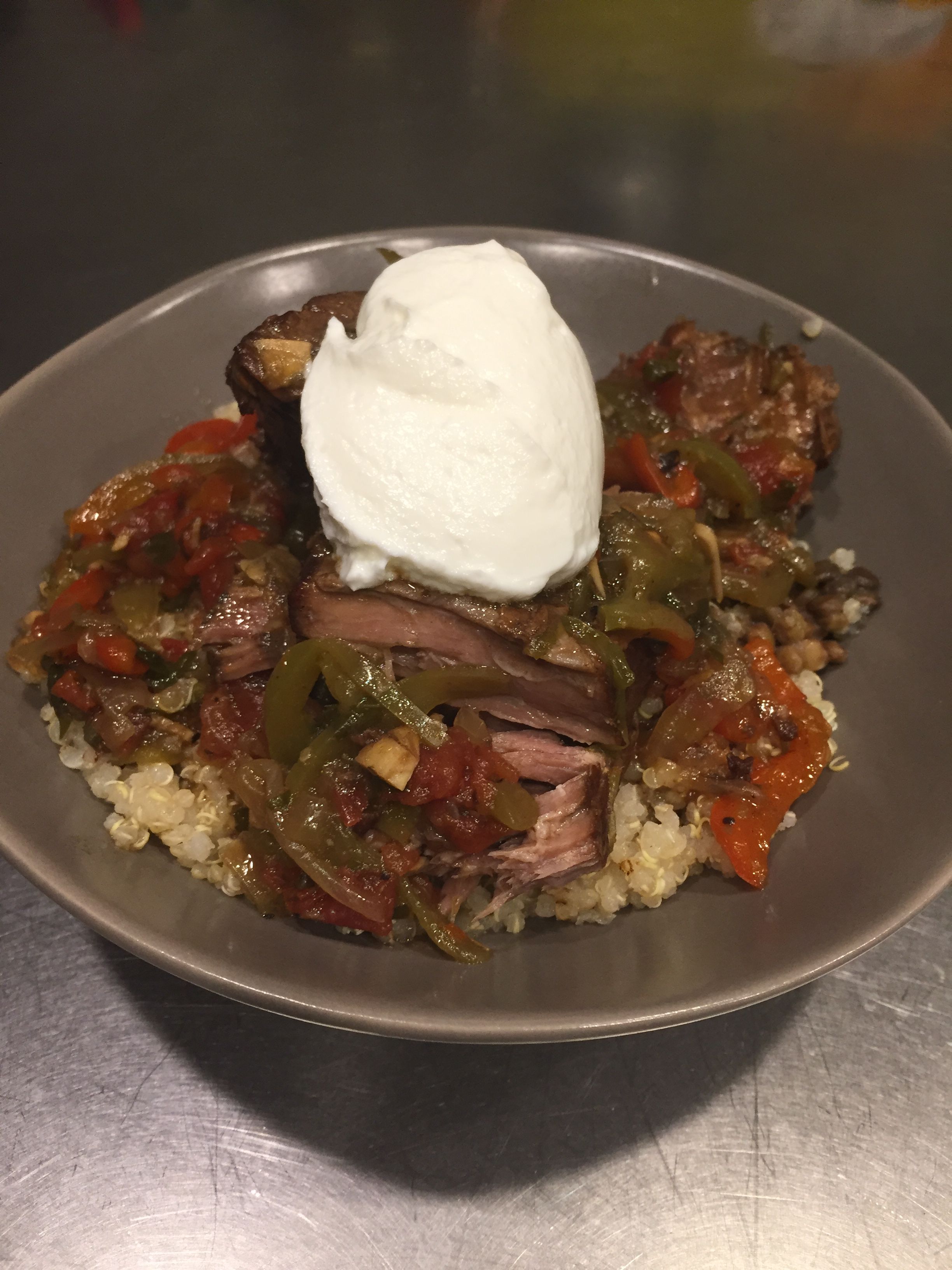 Now that is some tender meats! The traditional way to eat this meal would be with some tasty black beans and rice, but if you are looking for a slightly healthier version. We cooked up some quinoa, added the ropa vieja, and topped it off with a dollop of Greek yogurt! This meal is also delicious with a little avocado on the side.