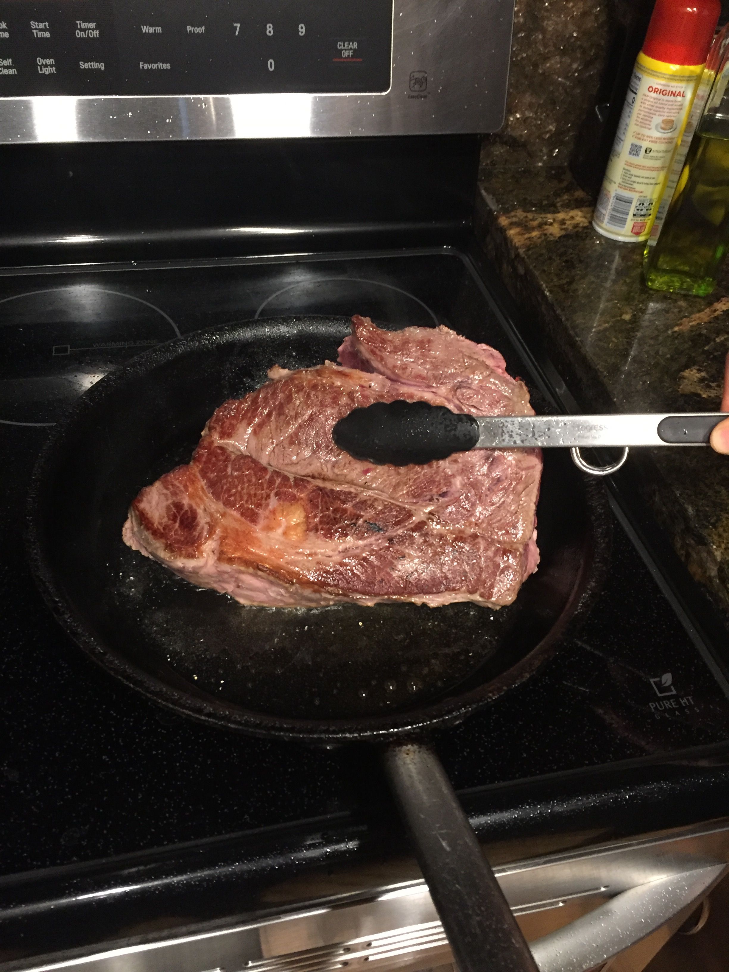 Brown your chuck roast on all sides.. About 1-2 minutes per side until golden brown. (This will keep your chuck roast extra juicy.)