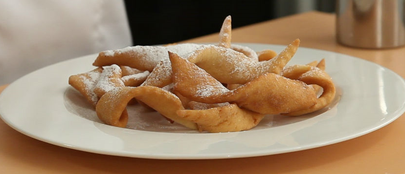 Place the fried crust on absorbent paper, then pour on a plate and warm with a sugar mixed with vanilla sugar.