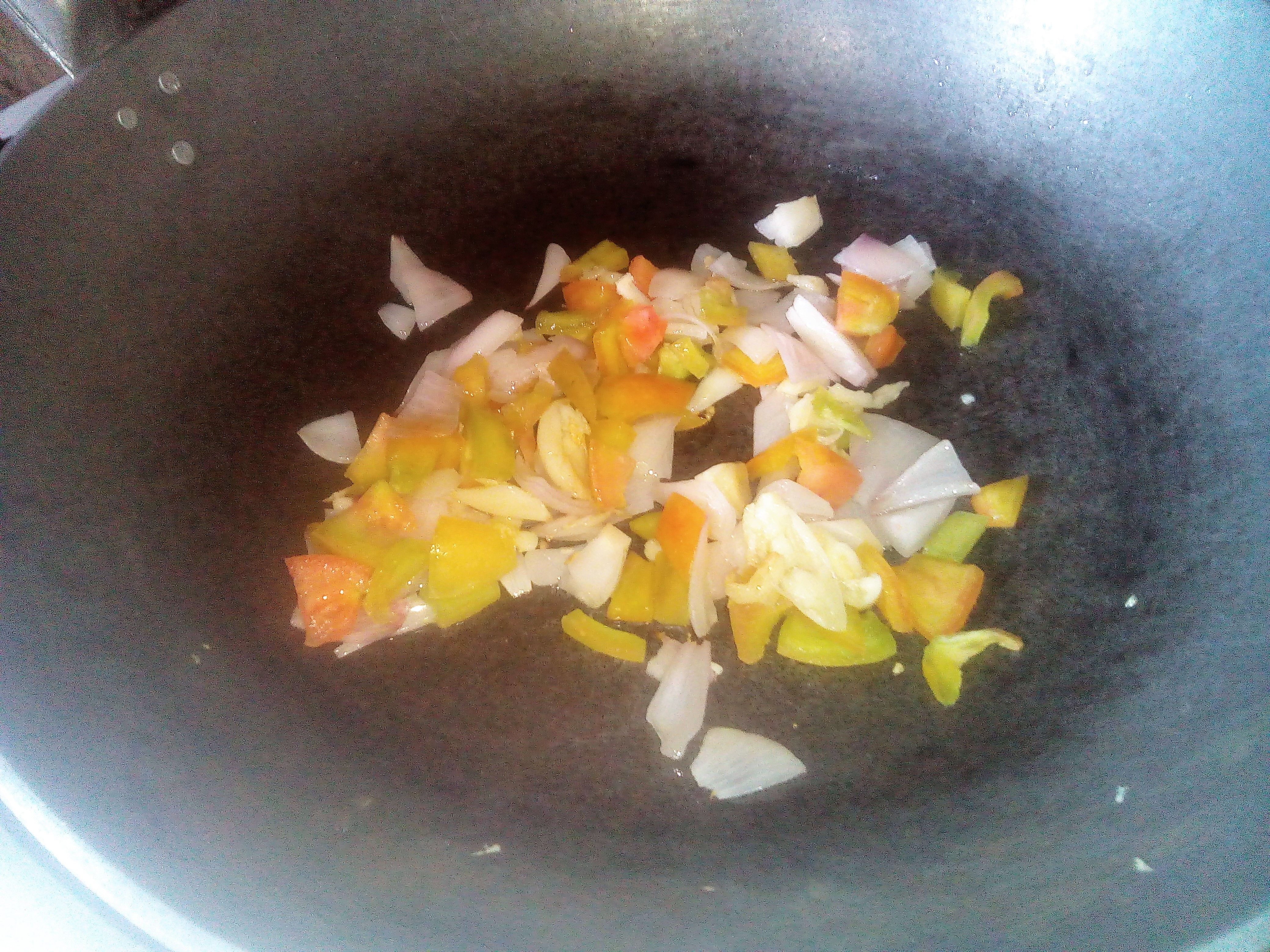 - Add the onion then sautee. Sautee in a low to medium heat.