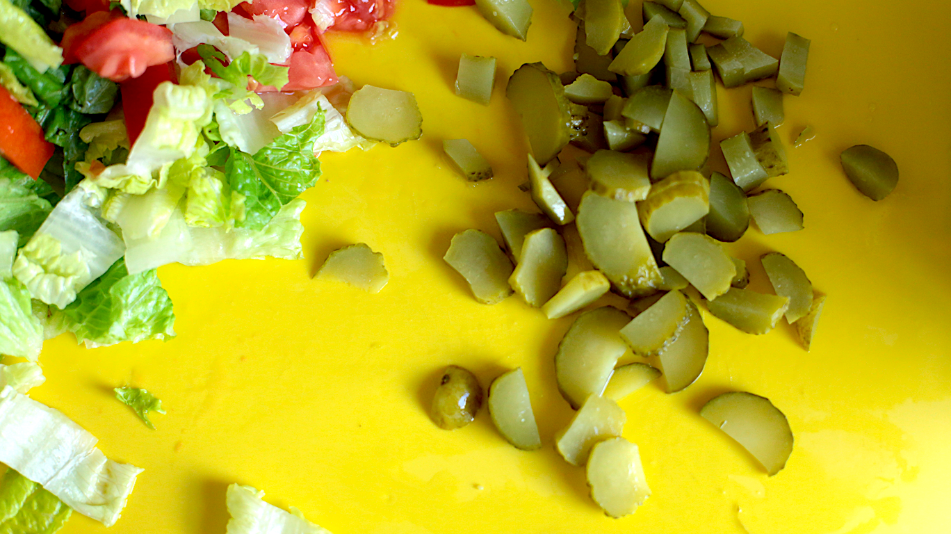 A simple salad that keeps me satiated for a full day. I sometimes crave burgers, and have learned to listen to my body when it craves animal protein. I continue to explore vegetarian cooking. For now, I feel weak and fatigued when I go a long time without eating meat.