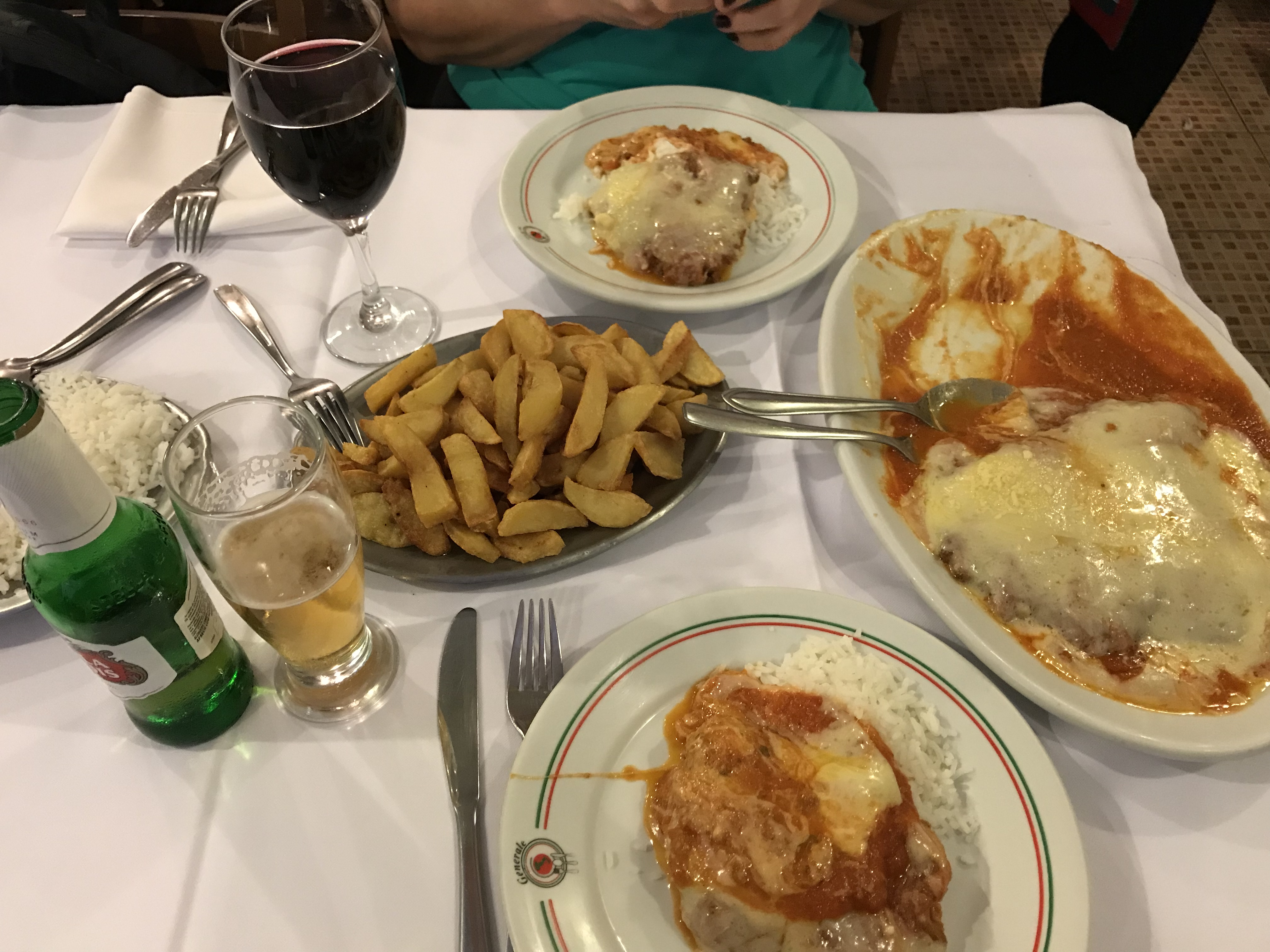 Quando visitei, pedi o famoso A Parmegiana, que acompanhava arroz e batata rústica. Simplesmente maravilhoso! Pedimos um prato e serviu duas pessoas.