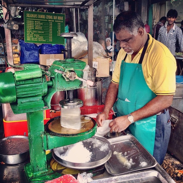 This is how they prepare the shaved ice. They used to use the manual hand cranked machine, but not anymore.
