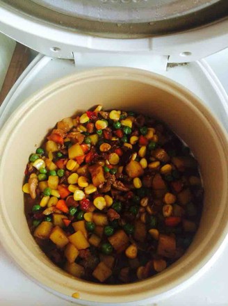 足不出户懒人焖饭painshow (25)in #food • 8 years ago 这道焖饭是同事间聊天提到的,就马上回家尝试,真的是很香,用心做的美食怎么都好吃! ·主料 1 甜玉米籽粒100克 2 胡萝卜100克 3 甜豆100克 4 土豆200克 5 五花肉200克 · 懒人焖饭的做法 1 把胡萝卜土豆削皮切丁,玉米甜豆洗净 2 肉切成丁 3 辣椒切段 4 米里面加三分之一糯米,这样饭煮出来糯糯的很香,用水先泡会 5 把洗好弄干净的菜都放进锅里翻炒,炒一分钟左右放盐 6 把菜放到洗好的米上,覆盖,然后电饭煲有煲仔饭功能的按煲仔饭功能 大功告成 这是比较复杂的做法 当然还有简单的,下次给你们介绍咯。