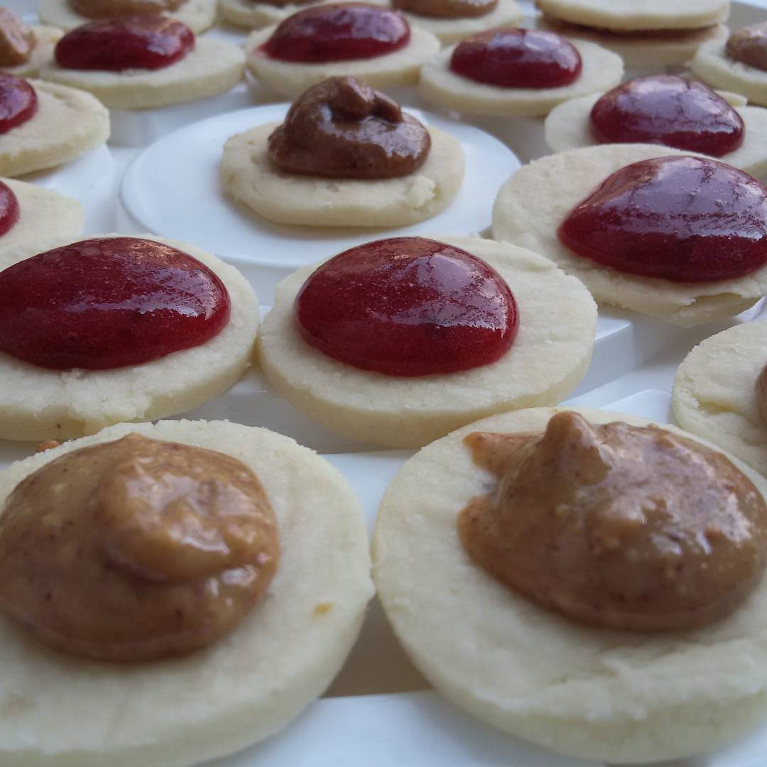 This photo is my favorite and you can see my cookies. These cookies are vegan, stuffed with red fruit jam and peanut butter. Delicious!!