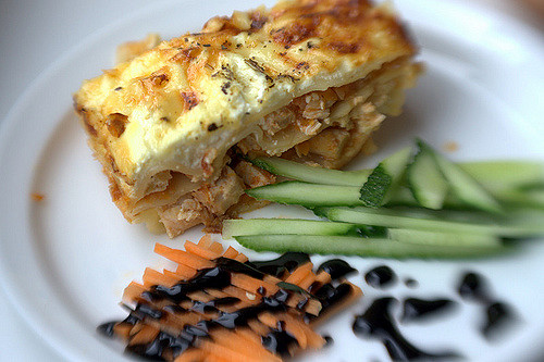 Repeat layers. The last layer should be sheets for lasagna, smeared with sauce and sprinkled with cheese. Bake in an oven preheated to 190 ° C for 25–35 minutes. Allow the lasagne to cool slightly for 10–15 minutes before cutting.