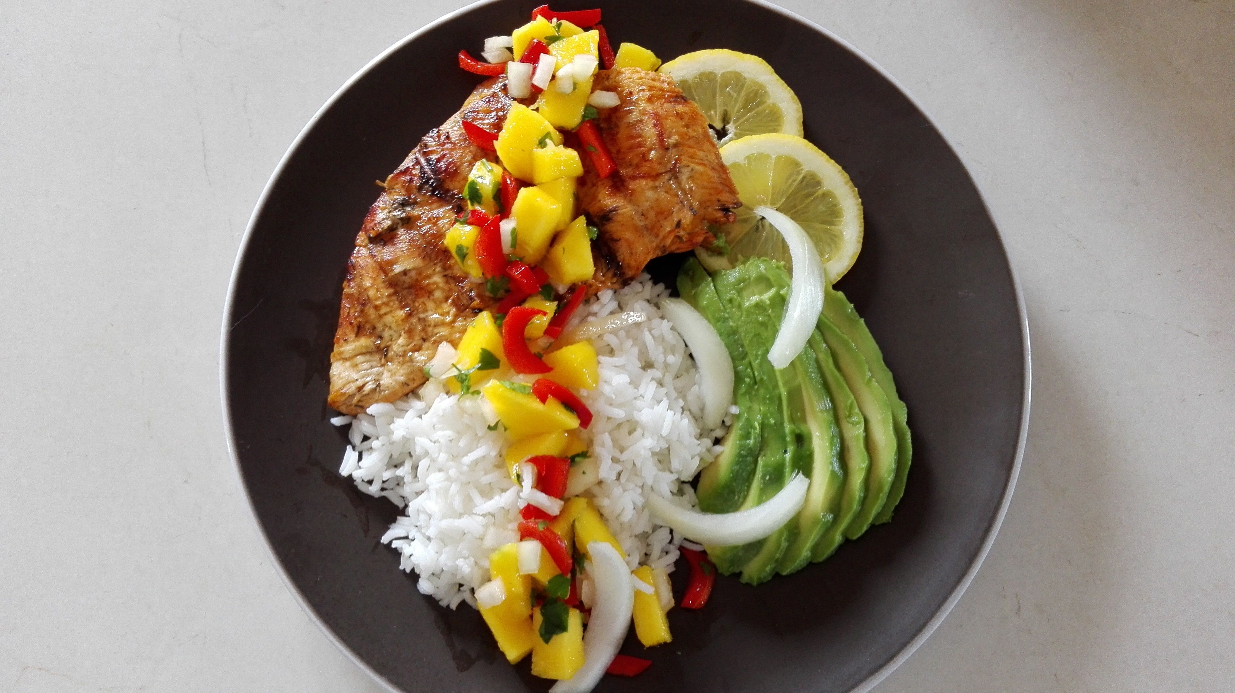 @paulawonders Recreation - Jamaican Jerk Chicken Plates + Mango Salsa - Recipe by @gringalicious