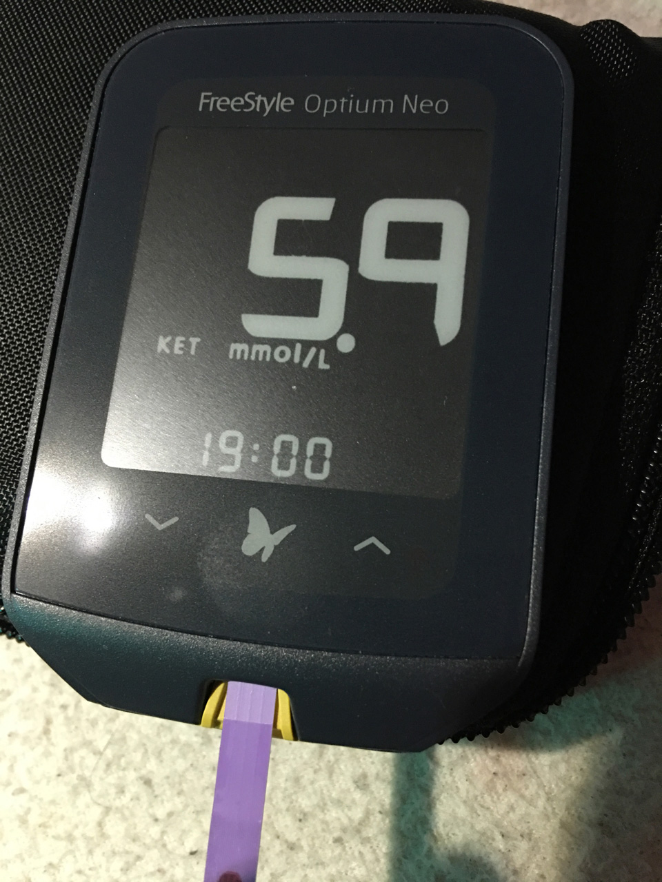 Glucose...3.1 You can see the red warning light bottom right hand corner. If I wasn't burning fat to make ketones that wouldn't be good I believe. However I am making Ketones. My Beta-hydroxybutyrate level was:
