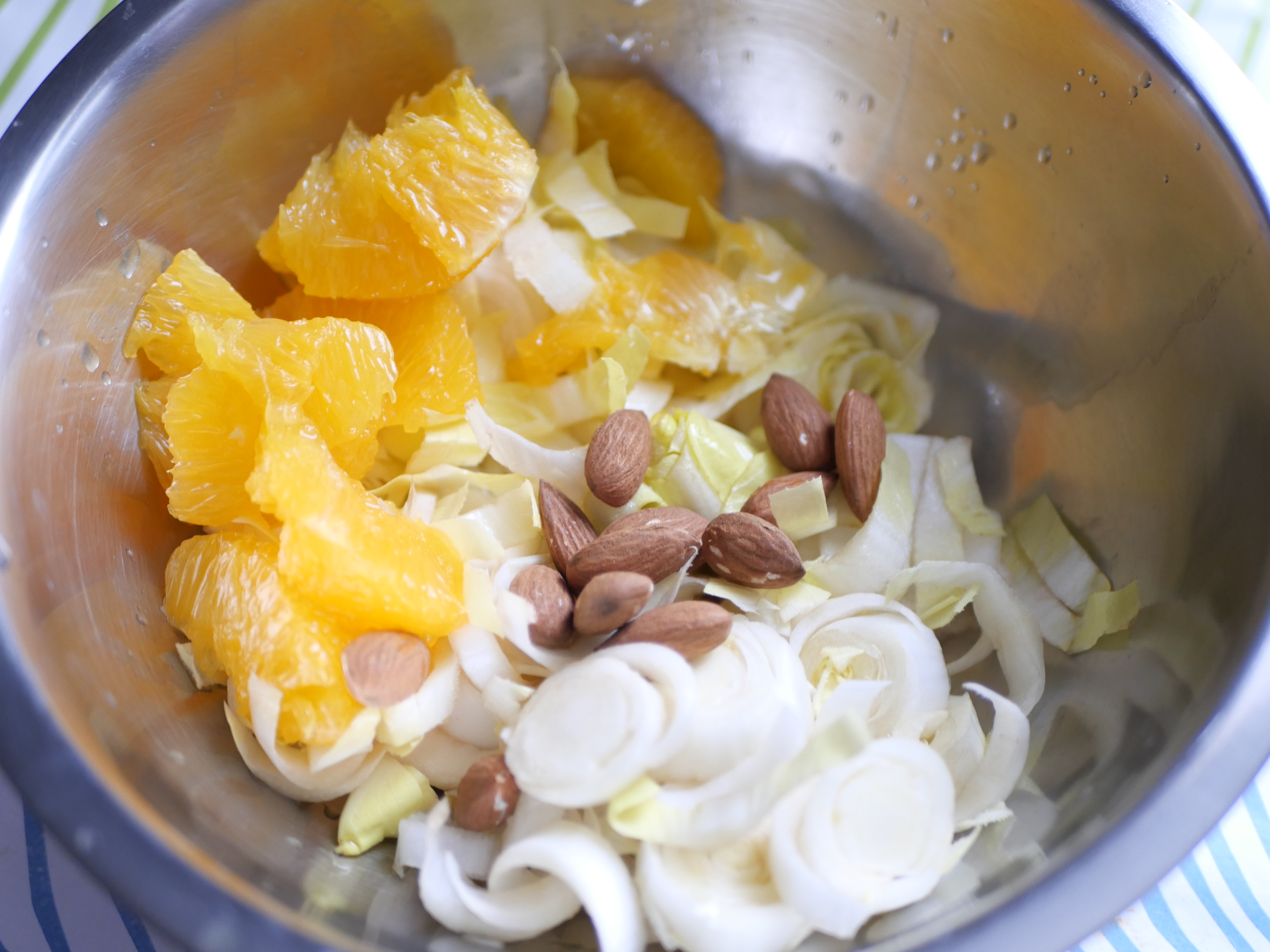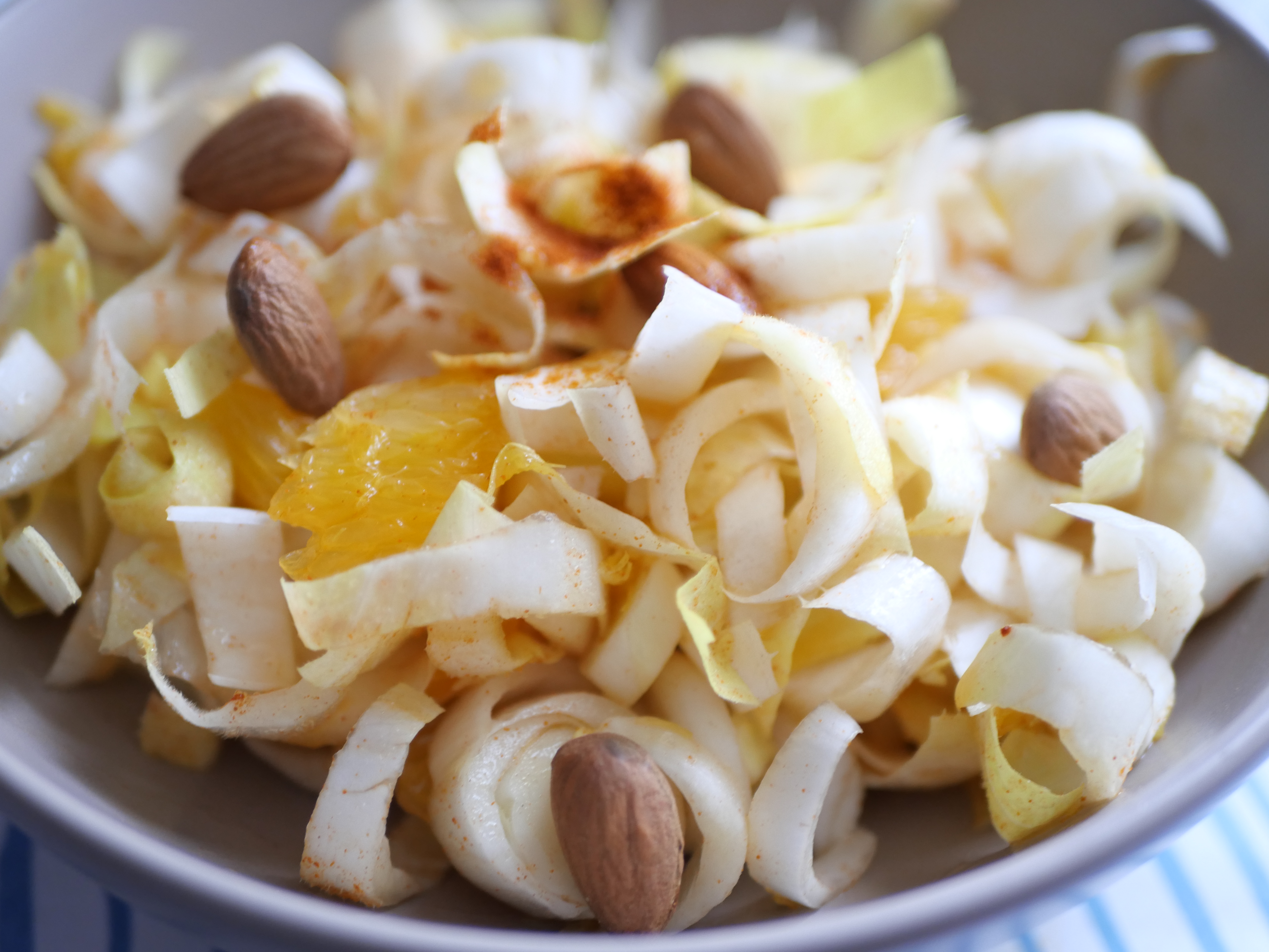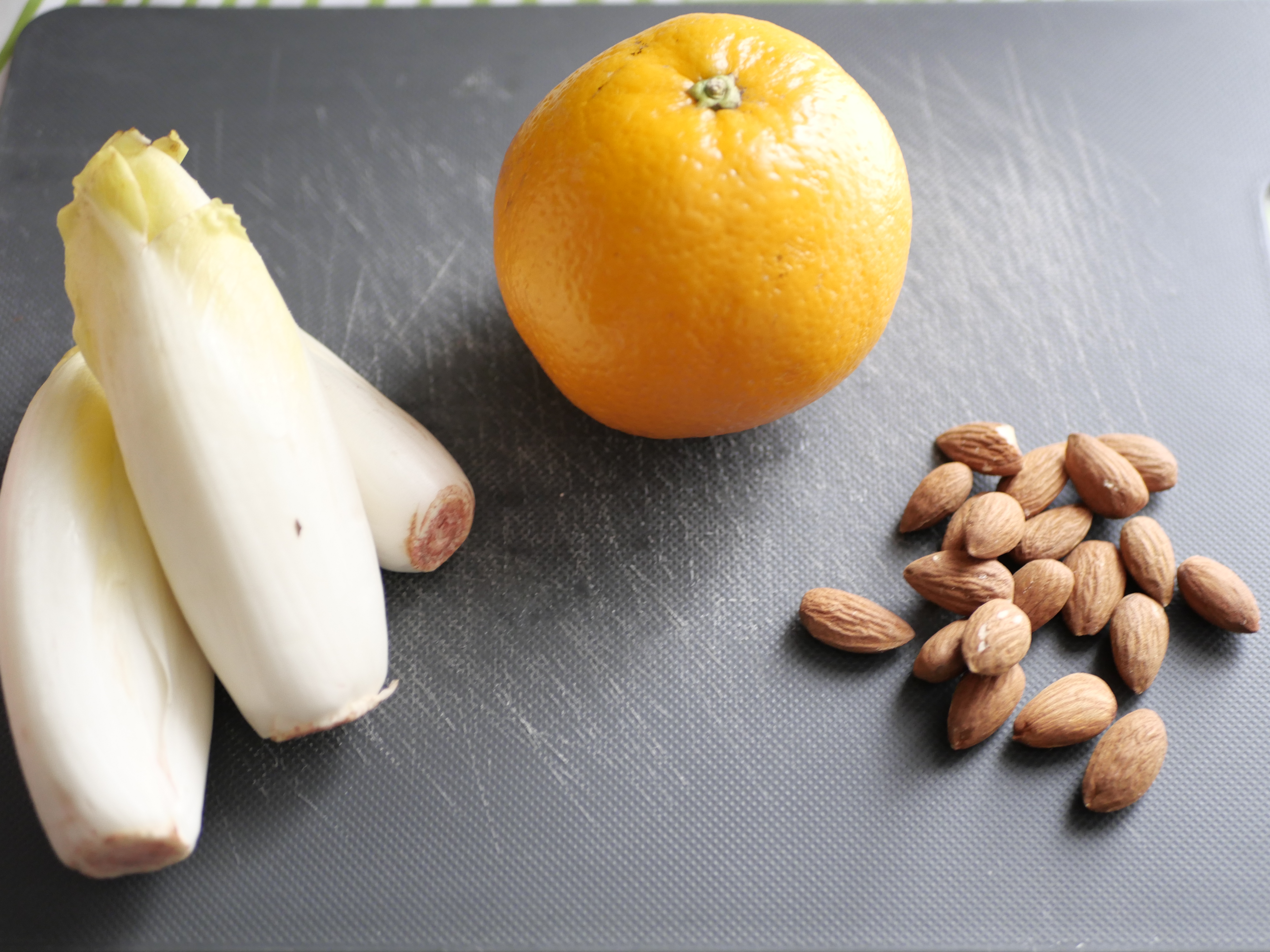 Une salade étonnante avec de l'endive, de l'orange et des amandes grillées pour donner un peu de croquant.